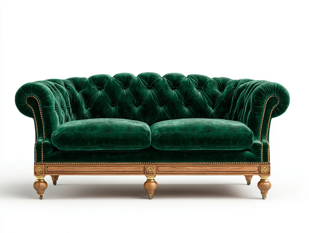Divano a due posti - velluto-legno - 182x92x78 cm - Verde smeraldo - stile classico