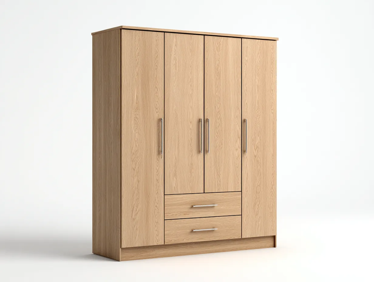 Armadio a 4 ante progettato per l'arredo della camera da letto. La struttura lineare e il design essenziale consentono un inserimento armonioso in ambienti moderni e ordinati.