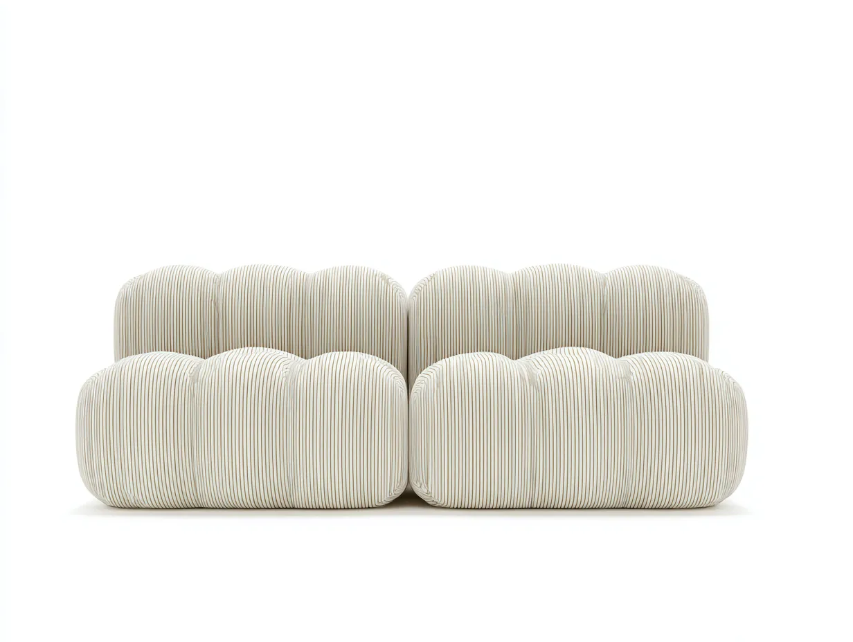Rivestimento in tessuto di colore bianco crema con lavorazione a righe sottili. Imbottitura uniforme studiata per garantire comfort e supporto, con struttura interna progettata per un utilizzo stabile e duraturo.